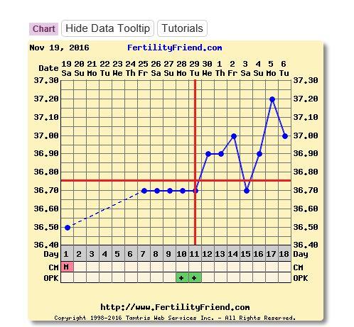 Ach jo, tak dneska teplota spadla na 36,8.Jeste muzu doufat, ze to je implantacni pokles a ne ms ☹
