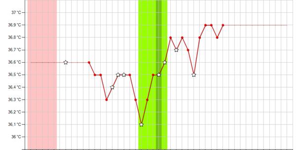 Ahoj holky, prikladam svuj graf do dnesniho rana. Dnes mi rapidne stoupla teplota, to se mi jeste nestalo. Co rikate?
