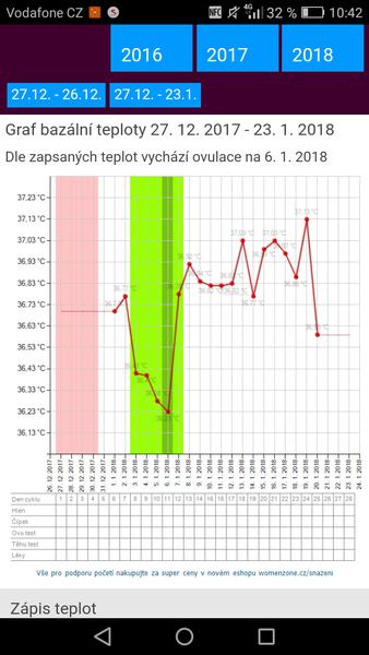 @rejni protoze to pravidlo 3 po 6 by melo byt min o 0,2stupne, coz ja nemam. A i ovulacni test jsem mela vice pozitivni az7.1. Coz znamena, ze ne vzdy tato aplikace urci spravne ovulaci. Ja tomu jeste taky moc nerozumim, ale merim uz ctvrty cyklus a ms mi vzdy 12dni od ovulky prisla. A ja jsem dnes mela velky pokles teploty dolu a zacala jsem dnes jeste vice spinit. Proto si myslim, ze u me probehla ovulace sedmeho nebo osmeho. Nevim jestli znas lady comp od naturcompu, ale je to mereni teploty v ustech a ten moje teploty vyhodnocuje za me. Pouzivala to moje kamaradka misto antikoncepce a je spokojena. Pak i diky tomu otehotnela.