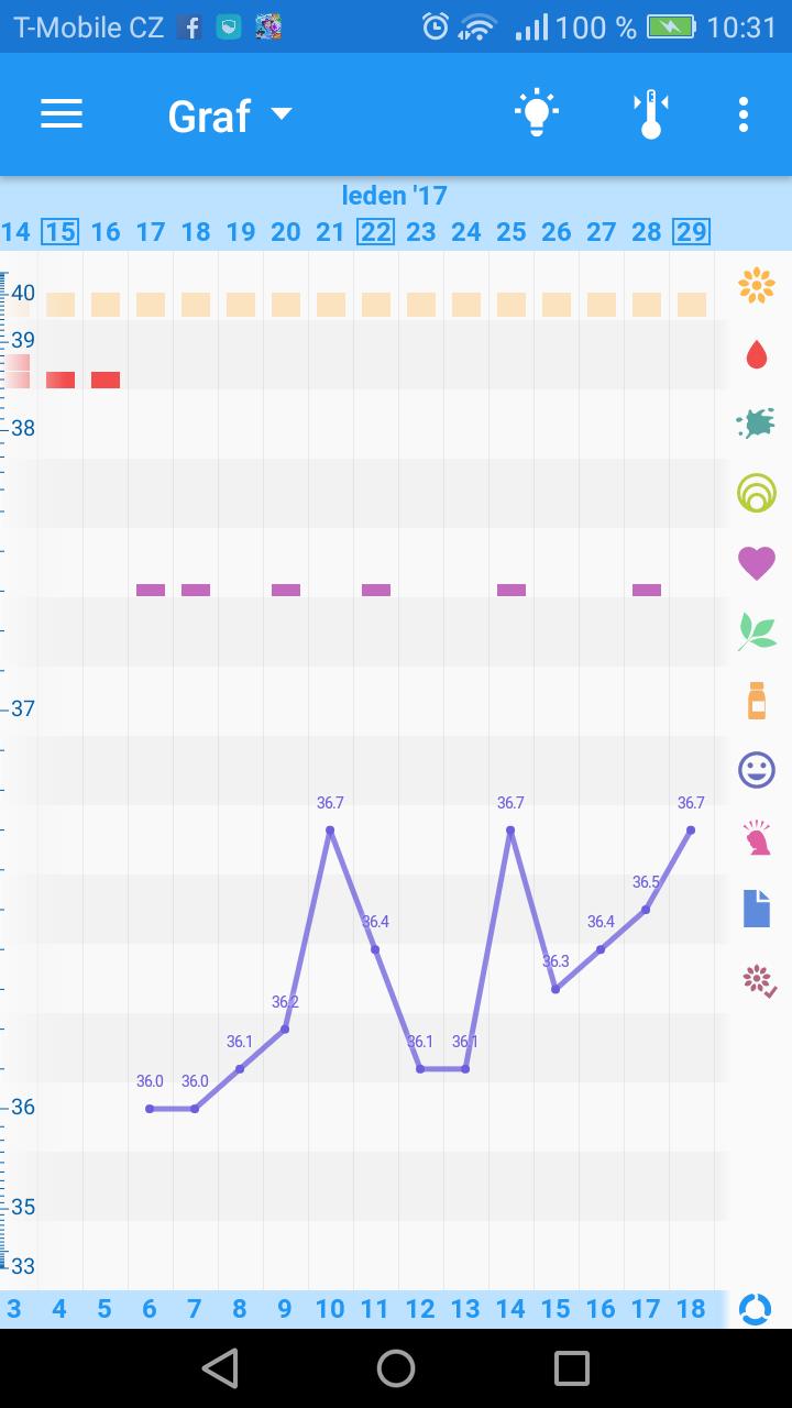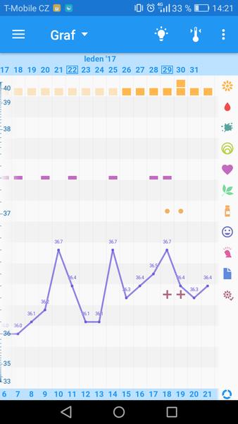 @snazimese91 Ahoj, po ovulaci musí být tři dny teplota vyšší, než za posledních 6 dní. Tato podmínka tam není splněná v těch dnech 21 a 22:/ viděla bych to spíš na ovulku později. Ale nemáš tam podrobná čísla (BT se měří na dvě desetinná), tak tam nevidím takové ty lehké rozdíly, které ale můžou napovědět🙂