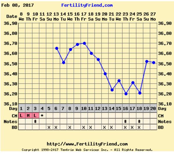 @snazimese91 dělá ti tam paseku ta teplota z 19.2., protože pro potvrzení ovulace musí být teplota 3 dny po sobě vyšší, než v posledních 6ti dnech. 18.2. bych netipla, protože 19.20.a21. nebyla tepltoa vyšší jak v posledních 6ti dnech...to byla jen toho 19. Pokud by se vynechalo měření toho 19.2., tak byla ovulace 23.2. - 24.2.:)
