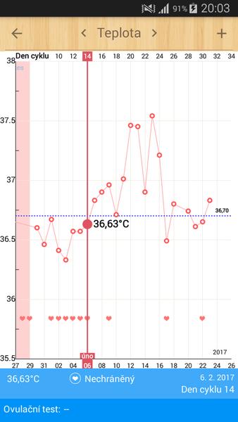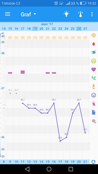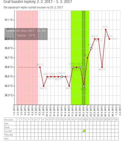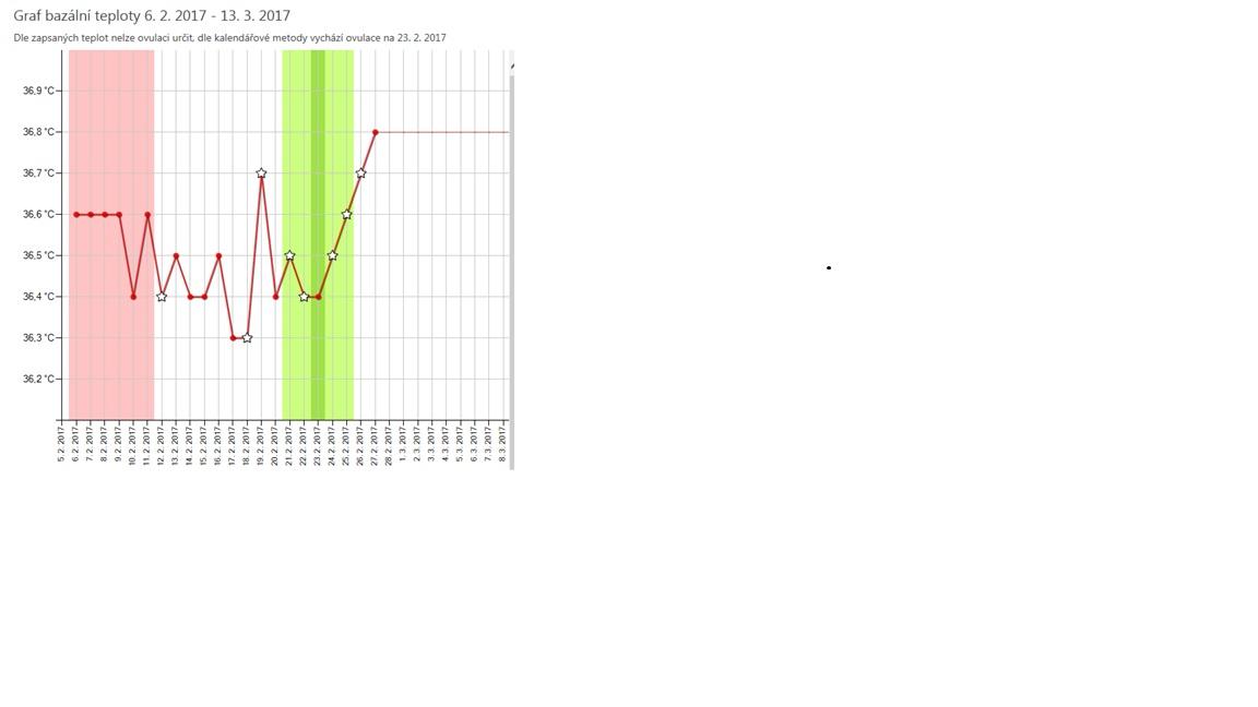 Dobrý den. Jsem tu zpět pro radu. Prosím, BT měřím druhý měsíc. V telefonu používám menstruační kalendář Ladytimer, kam si teploty zapisuji. Nejprve mi aplikace ukazovala, že budu mít ovulaci 26. 2. podle zadávání teplot mi pak však ovu skočila na 18. 2. a včera, po zadání další teploty mi to ovulaci ukazuje na 28. 2. Podle grafu na womenzone jsem měla ovulaci 23. 2. Jsem z toho trochu zmatená. Podle grafu bych to typovala opravdu na toho 18. 2. Co si o tom myslíte vy? Děkuji za váš čas 🙂