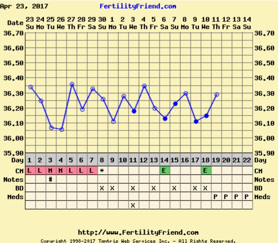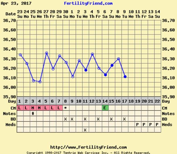 Přikládám prozatímní graf tohoto cyklu, třeba vás tam něco trkne nebo mi jen řeknete, že je anovulační 🙂