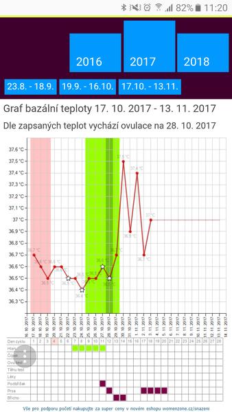 Ahoj ženy, tak momentálně jsem "uprostřed" ovulace ,resp. plodného období. jsem zvědavá, jak bude skákat graf s teplotami po. To zas budu na nervy. 😀 Mamatesty už nekupuju, to by zas byl samej pozitivní (rozuměj duch) a nic z toho. Lepší fakt sledovat tu teplotu, člověk si ušetří penízky za ukvapené testování.