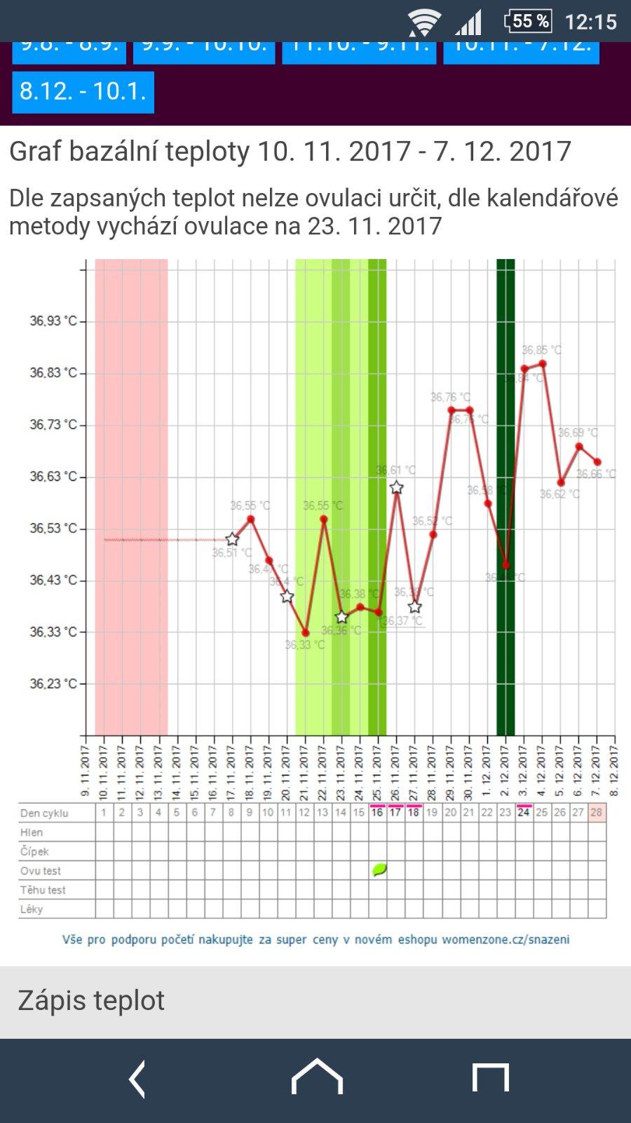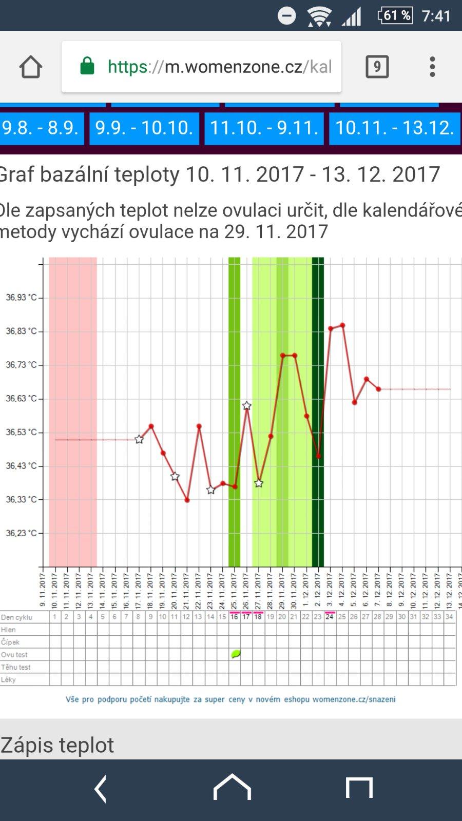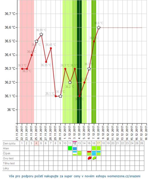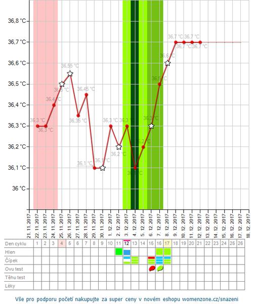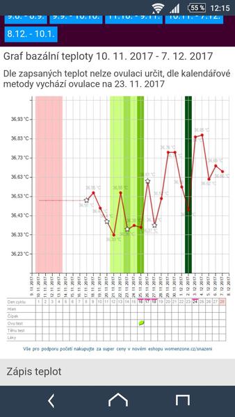 @vendelinka08 ja tem teplotam asik nerozumim..kdy probehne ovulace..posledni den nizkych teplot..3 po 6?tudiz toho 6.12...tak to asi nic budu cekat na ms 😔 ale dekuji