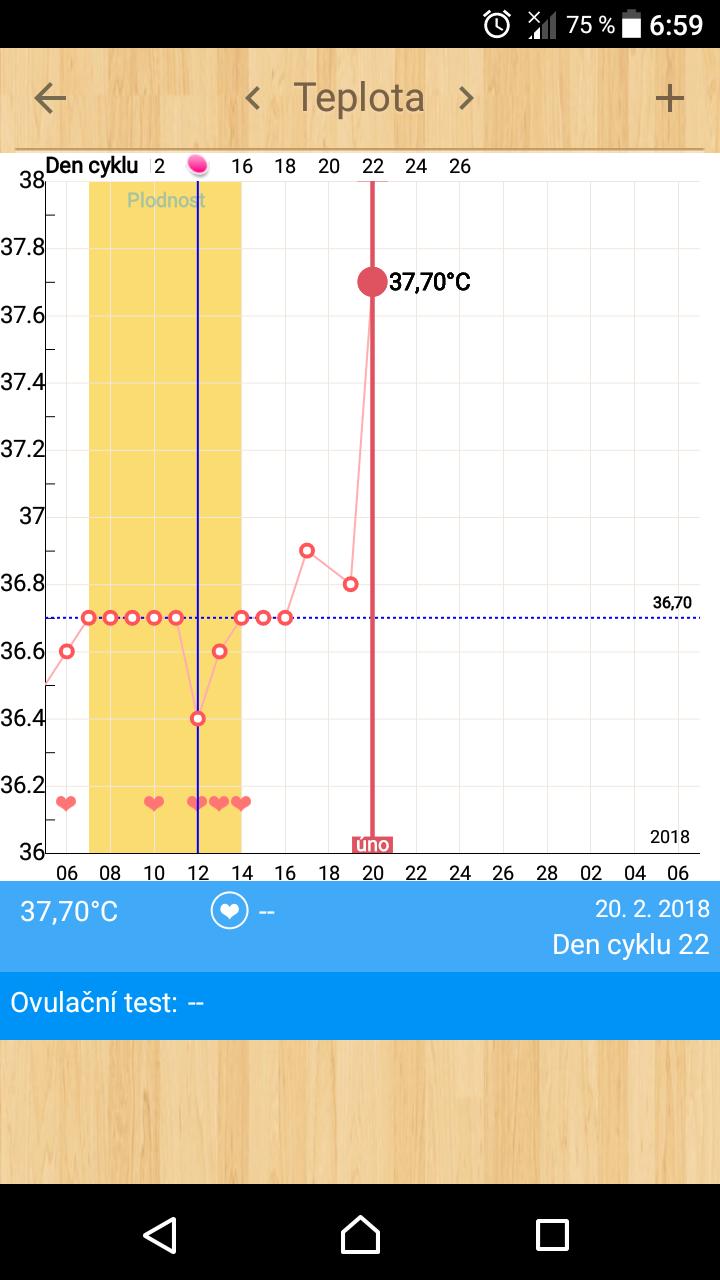 @lobella jj to je pravda, dole je o něco vyšší... Záleží, jestli už sis několik cyklů měřila, kolik tak po ovulaci běžně máš? Ale přijde mi, že toto je i vyšší než běžná poovulační teplota dole, co tak vidím grafy, tak je to většinou max. 37,5... Nevím no 🙂 uvidíš zítra jaká bude!