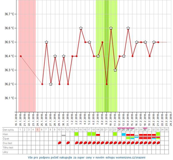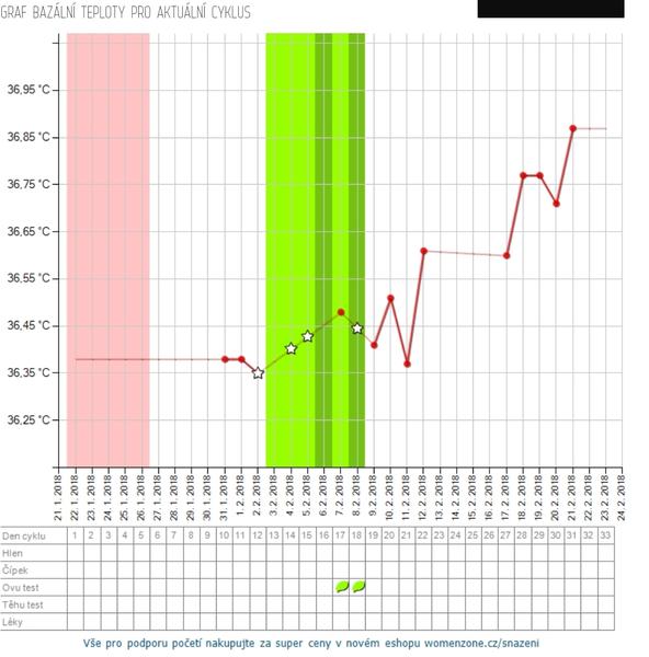 Holky takhle pokračuje můj graf. V pátek by se měla dostavit menstruace. Proto ta zvýšená teplota???