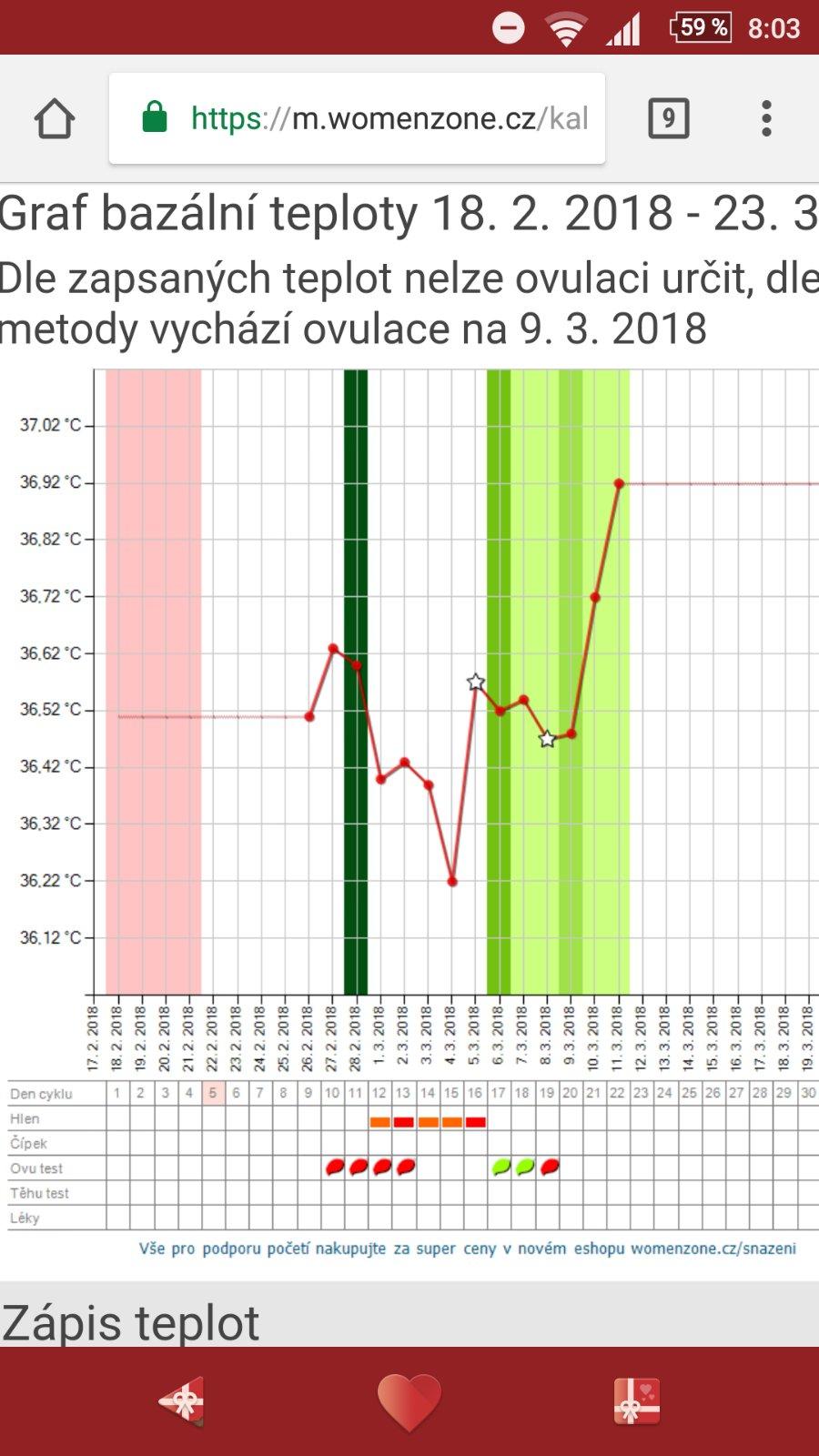 Jinak ja mela pozitivni ovu test 6. a 7.3. byly hodne podobne, ale graf mi spocital podle teploty ovu na 9.3. tak snad ten den predtim bude stacit, pak uz to bohuzel nevyslo ☹