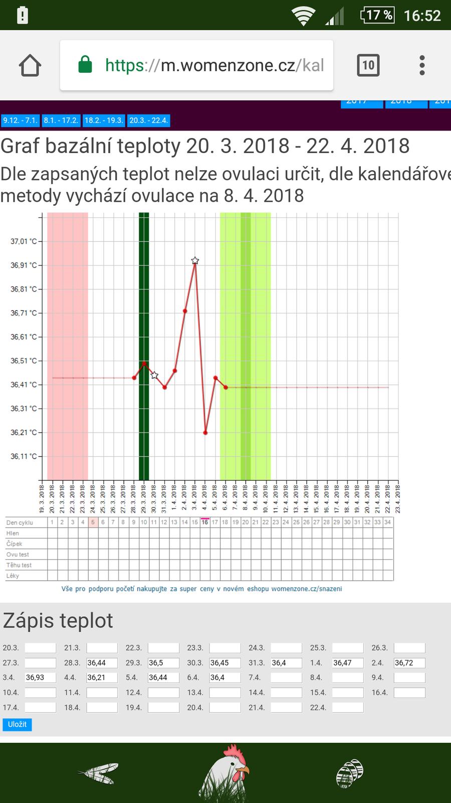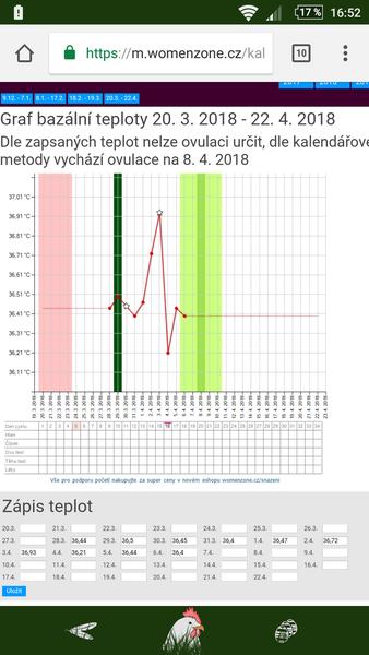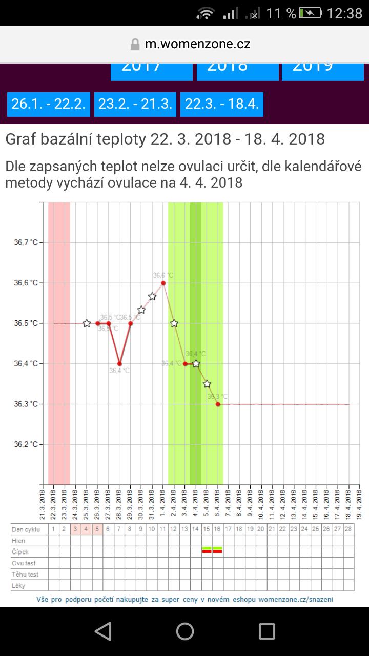 @dindicka tak uz vidim graf 😊...no..uvidis jake budou nasledujici dny teploty...a dle toho bych se ridila. Take mym cyklus 28 dni a ovulaci 14 dc..coz je dnes.