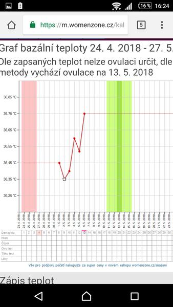 @janickazabicka ja uz mam poovulacni...ovulka byla v sobotu...tak mi vychazely i testy. Tak uvidis co a jak bude dal...zatim je graf v pohode.