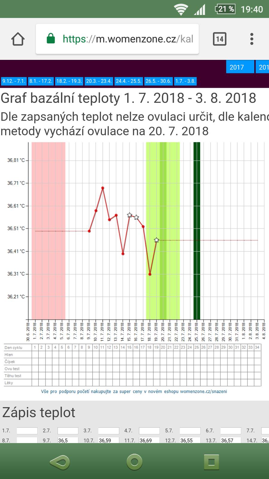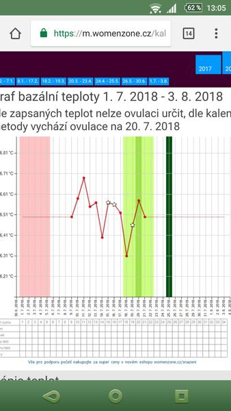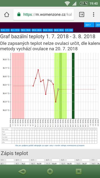 @janickazabicka Jani..uvidic co teplota..test nemusis vychytat...bud trprve bude nebo byla. Ale to ukaze graf zpetne. Ja pockam do nedele..pak budu testovat. Kdybych nebyla na dovce tak uz testuju..ale tady nechci. Jsme na horach na Slovensku...do dnes prselo a ted uz je krasne..ale stejne ty hory miluju..i kdyz prsi. Jinak se trochu pozoruji..ale jak rikam..priznaky tehotenske nemam. Ta nejistota je silena.