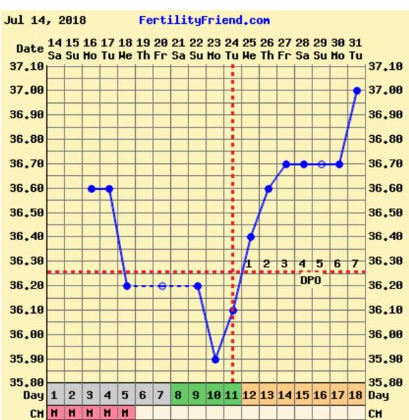 Podle WZ proběhla ovulace 15DC, což ale tak určitě nebylo, neb 16 DC dr videl dominantni folikul, co by měl prasknout za 2-3 dny, tj DC 18 či 19. Ovulační test vyšel naprosto jasně pozitivní 18 DC. A graf na FF zatím ovulaci neukázal. Jak to máte vy? Jsem atyp jenom já?😂
