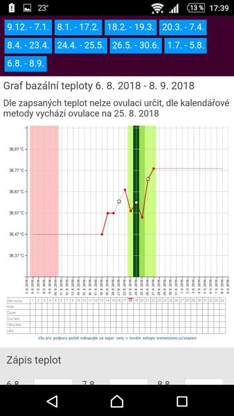 @janickazabicka já vůbec nevím jestli mám nějakou vip verzi holka...jen jsem stáhla apku prelozila zaregistrovala a smitec...jinak dnes graf takto jsem zvědavá na zítřek a včera jsem se spletla všimla jsem si toho pozdě taky jsem měla včera 36.7 a ne 36.8..asi mi to přeskočilo a já si nevšimla