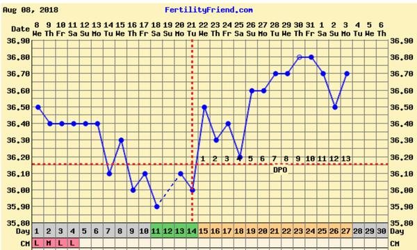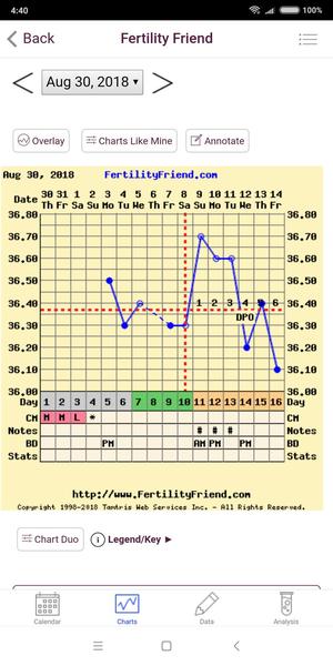 Já jsem 30 DC a v očekávání menses..ale jak byla ovulace hodně pozdní, tak ještě minimálně 5 dní než menses dorazí.Ale díky měření vím, ze ocekavat menses 32.den nemá smysl a že zpoždění neznamená těhotenství, takže si ušetřím zbytečně zklamání z testování.