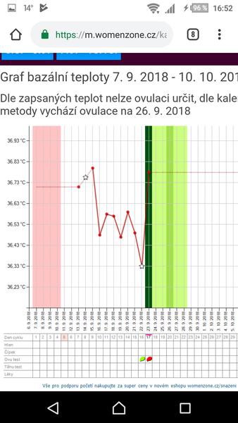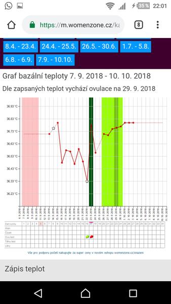 @janickazabicka Jani..verila bych spise tomu druhemu grafu. Ten wz vypada tak nejak neverohodne. Teploty uz mas x dni po sobe vyssi. Myslim zee ovulka uz opravdu byla. Obcas mi to take tak hlasilo. Stacila nejaka odchylka teplit a uz mi to psalo neco divneho..ale vedela jsem ze to neni mozne.