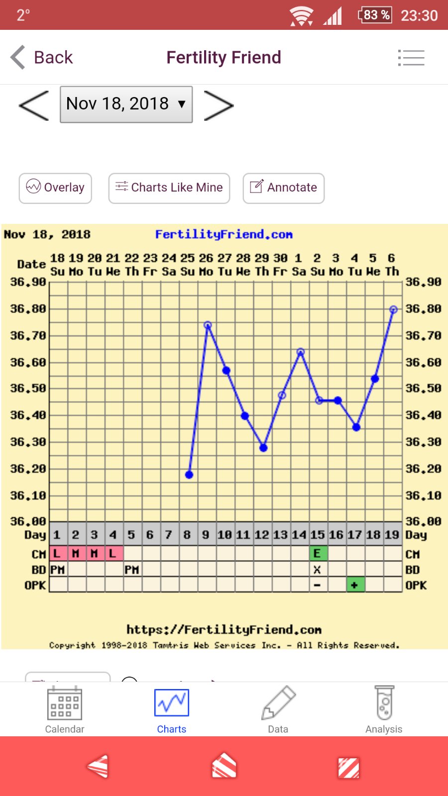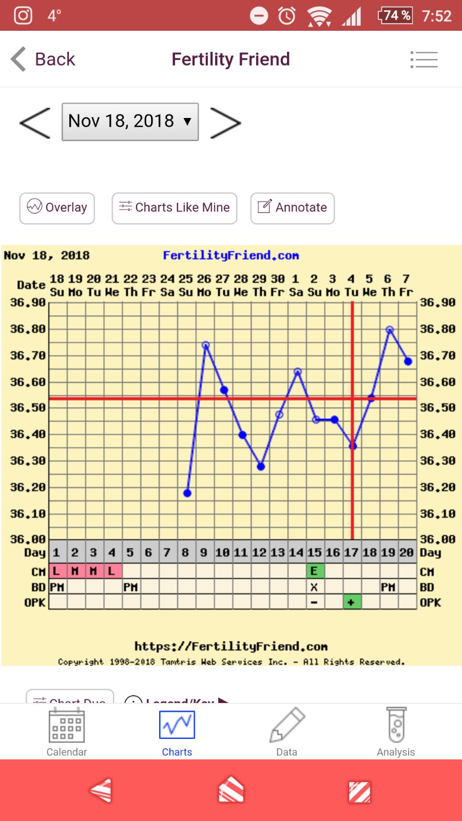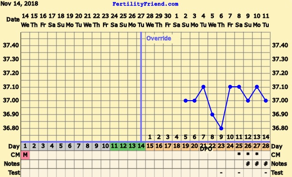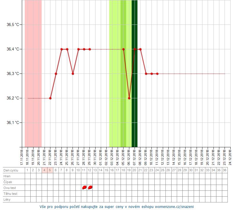 @gejbinka6 Záznam je špatně vyhodnocený, ale je ukázkově ovulační. Ovulace se počítá od 6.12., takže jste 9.dpo. Zítra můžete zkusit test,spolehlivý bude až od 12.dpo.