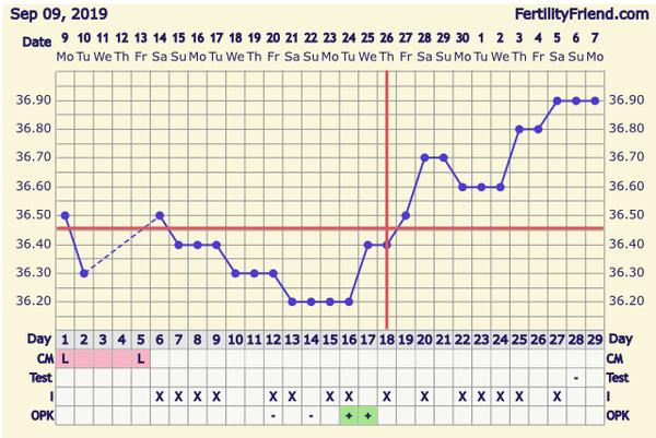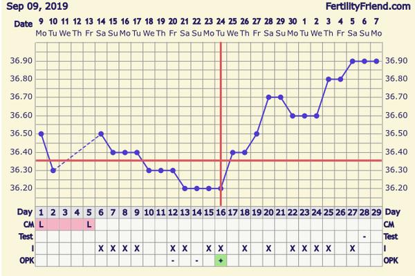 @kudelkabudouci jelikoz nemas dostatecny pocet mereni,graf ti nevyznacil ovulaci,kterou tipuji kolem 1.10.(priste mer ihned po skonceni MS, abys mela alespon 6-8 zaznamu pred ovu).Co se tyce ruzoveho spineni, "muze" se jednat o zavrtavani embrya, mer dal a kolem 12.10. si udelej test a uvidis jak mesic dopadl (ovulacni test ukaze tehotenstvi,ale nyni je jeste brzo,ten bych zkousela nejdriv 10DPO)..drzim palce👍