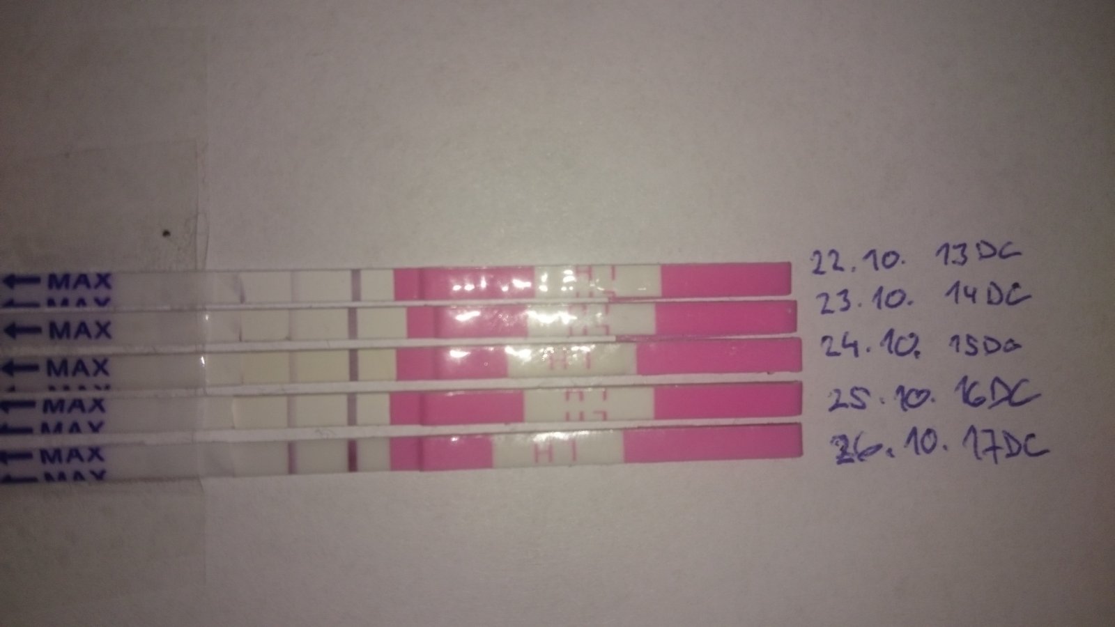 Ahojky, nejsilnější jsem měla 17DC pak jsme měla testy a manžel zapomněl do lékárny z práce a pak jsem ho tam neposílala. Tak bych řekla, ze 18DC by byla nejsilnější - což je včera 😂 dnes už by byla byt méně, ale asi ho pošlu chudáka 🤔 zjištěnou ovulaci jsem měla 21DC, 18DC, 18DC a nyní to vypadá taky na 18.DC pobolívá mě teď spodek a včera jsem usla jak miminko když už mi bylo dobře 😂