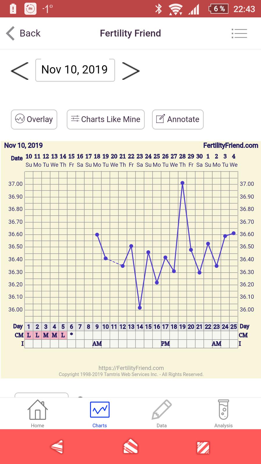 @hermij měřím teploměrem microlife na dvě desetinná místa vaginálně, baterka je vyměněná, tohle je druhý cyklus měřený tímto novým, minuly cyklus sice taky hodně skákal, ale vykazoval rozdíl teplot mezi luteální a folikulární fázi, asi opravdu to nachlazení se mnou zamavalo :-/