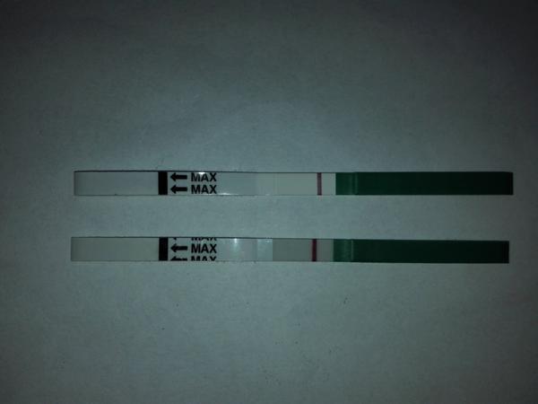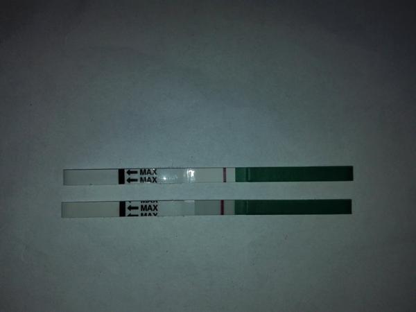 jak jsou 2 testy na fotce tak ten spodní je dnešní a ten vrchní je včerejší a jak je sám na fotce tak je ten z dneška.je to comfort test a ten má tu druhou čárku skoro stejně jako pepino.dnes 11 dnů od ovitrelle a asi 9DPO 🙂
