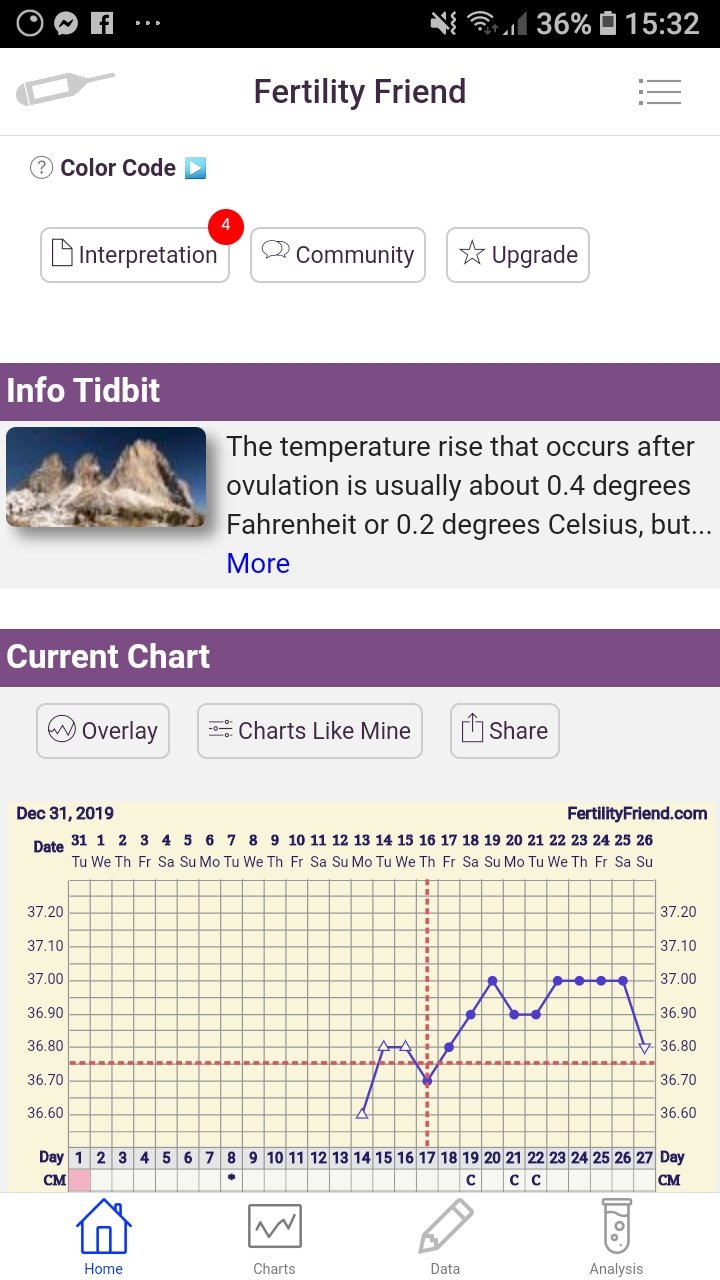 @dendasubaristka Ne, potřebuješ šest teplot, po kterých přijdou tři vyšší a ovulace probíhá někde mezi tou poslední nízkou a první z teplotního vzestupu. 13.DC vypadá jako poslední nízká a 14.DC teplotní vzestup, ale chybí ty další dvě teploty, které zatím neznáme.