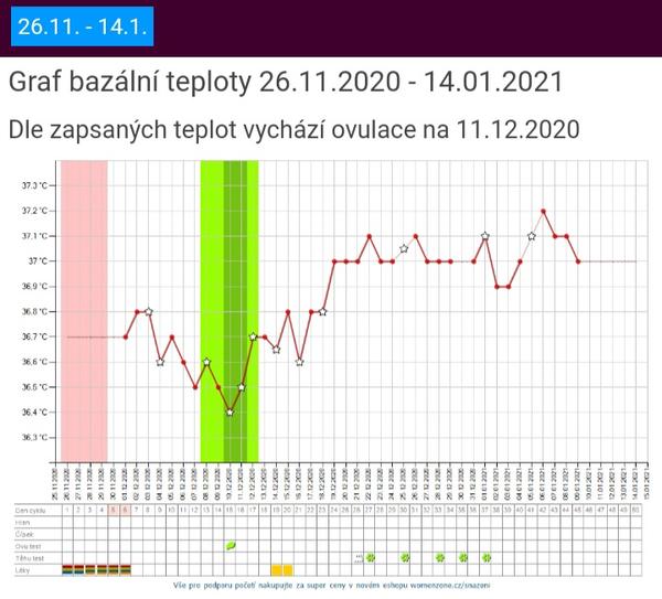 @nikynikol25 V pohodě. Už jsi zase o pár dní dále, tak držím pěsti, aby se zadařilo. Teplotu už neměř, jsi po ovulaci, dneska (22.11.) se počítá 7. den po ovulaci. Ovulace proběhla někde mezi 16.-19.DC, ale já počítám poovulační fázi až od vzestupu produkce hormonu progesteronu.