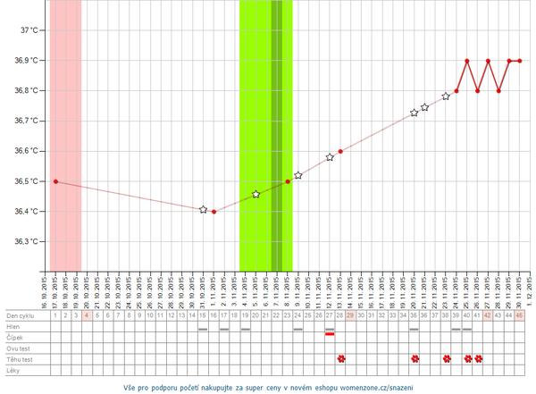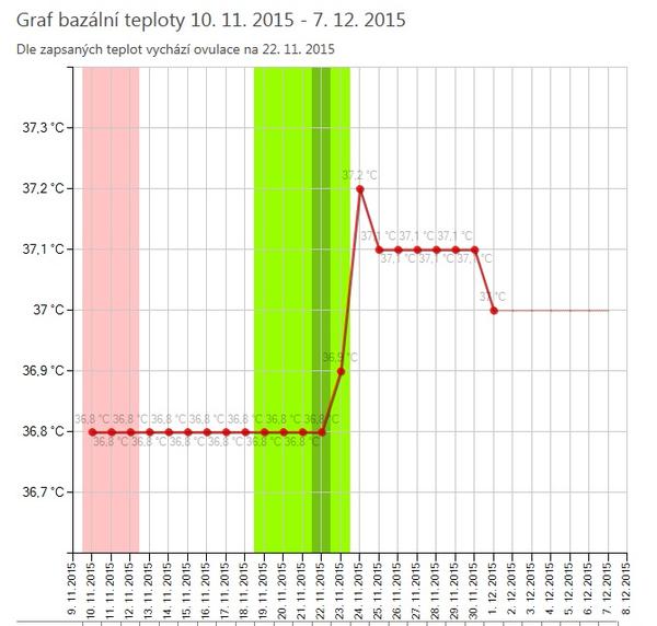 @bibinka2208 Tam by se dala dohledat poovulační křivka, ale nesedí tam ty hodnoty z 22.11. a 23.11. - nespala jsi třeba méně, nebo jsi nebyla nemocná? Pokud by se tyhle dvě hodnoty nepočítaly, pak k ovulaci došlo 26.11.