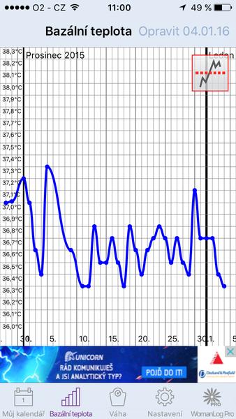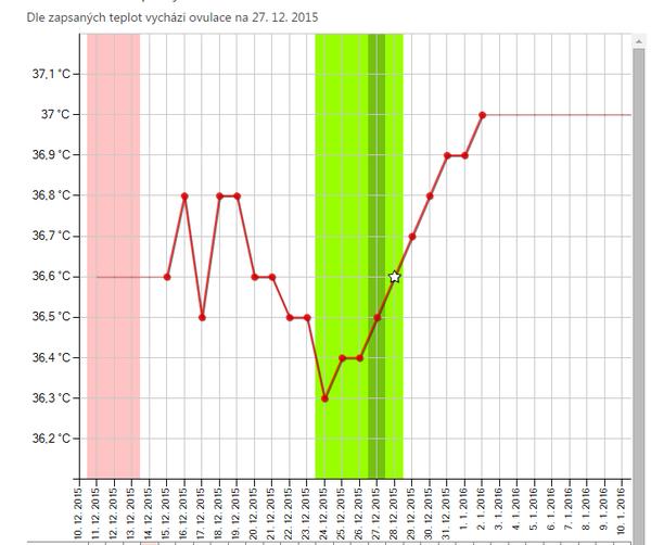 Já jsem od 28.12. marod,takže se nemůžu dál řídit teplotama v grafu. Došlo mi to až dnes,po tom,co jsem zapsala další hodnoty a viděla ten výkyv,že jsem si vlastně brala někdy kolem 2 ráno ibalgin. Bolela mě hrozně palice až na zvracení a navíc mi to i srazí teplotu. Ráno jsem tak naměřila opět jen 36,3 , stejně asi jako dva dny zpátky,kdy jsem si to taky neuvědomila. Na kolik má ten ibalgin vliv,to nevím. Každopádně je těžko nějaké desetinky přičítat. 😒