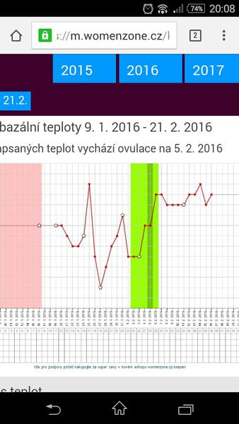 @myjusiatko já jsem si to špatně zaznamenala do toho women jsem to prepisovala říkali holky že je lepší mám to v tom grafu blbě mám ještě graf tady pošlu foto. Vzhledem k tomu že v lednu jsem měla 1dc 9.1. Tak ovulace byla až teď a v prosinci jsem měla ovulaci 23.12.