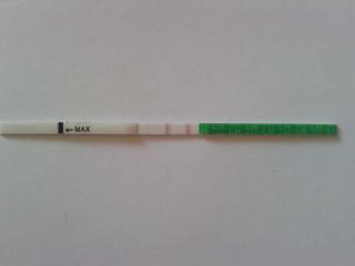 to je ten isty test, len v priebehu cca 7 min, ze ako sa krasne dofarbil (prva fotka bola fotena ako druha v poradi, takze na nej je vidiet testik silnejsi) zeby sa takto pekne ovulka chystala? 😲