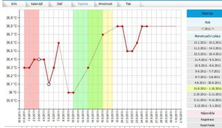 Ahoj děvčata, nejsem ještě tak zběhlá v měření BT, proto bych potřebovala radu zkušenějších.....už jsem si včera po vzestupu teploty myslela, že v neděli byla ovu, ale dnes teplota zase klesla, takže zatím asi nic, že? Jestli to chápu správně. Graf dnes takto: