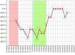 @elebe iiiha, no to neviem, ci sa dostanem....ale nemoze byt taketo stupanie a klesanie teplot proste prejavo anovulacneho cyklu? alebo ta zvysena teplota z toho, ze sm akurat pocas rchy bola velmi chora.
