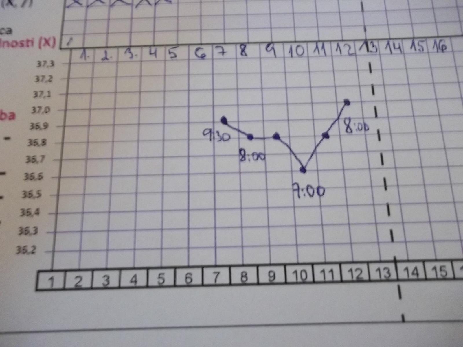 je mozne ze ovu byla az 26 DC?? ja jsem si skoro jista, ze to ma platit tak, jak je v grafu, pokud prihlidnu k tomu, ze v druhe pulce zari se znatelne ochladilo a my jsme zacali topit az od 1.10..... tzn, ze v pokoji jsme meli o kus chladneji nez predchozi cyklus...... i predchozi cyklus se mi po ovu zvedla teplota o 0,3 °C a tento vlastne taky, kdyby to platilo tak jak to je ted... co si o tom myslite??