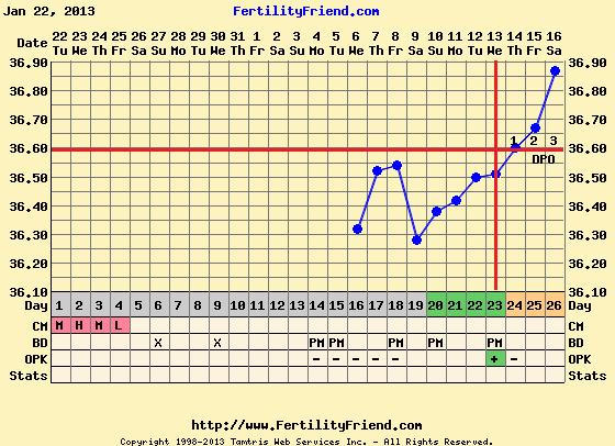 Ja dnes takto...myslim ze ovu bola na valentina, tak pocitovo...ale mozno jeden folik praskol v stredu a druhy vo stvrtok 🙂 http://FertilityFriend.com/home/3fa681/