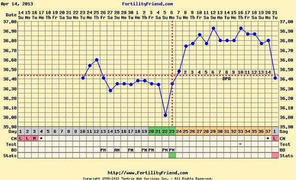 ako vidite matie ma troska ta teplota na 14DC, hoci bola merana asi o hodinu skor ako vsetky ostatne, preto neviem, ci ju vobec brat do uvahy....dr. mi totiz chcel upravit cyklus na 28 dnovy....