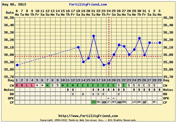 Ahojte, tak mne dnes označilo ovulku http://www.fertilityfriend.com/home/2d6fbf, aj to pekne sedí, tento cyklus som ju aj poriadne cítila, myslela som, že mi praská nie jeden, ale milión folikov (ako popcorn v mikrovlnke 😀 ), celý deň som mala tak strašne intenzívne ms bolesti, že som odbiehala na wc, či sa náhodou neohlásila nečakane mrcha 😀
