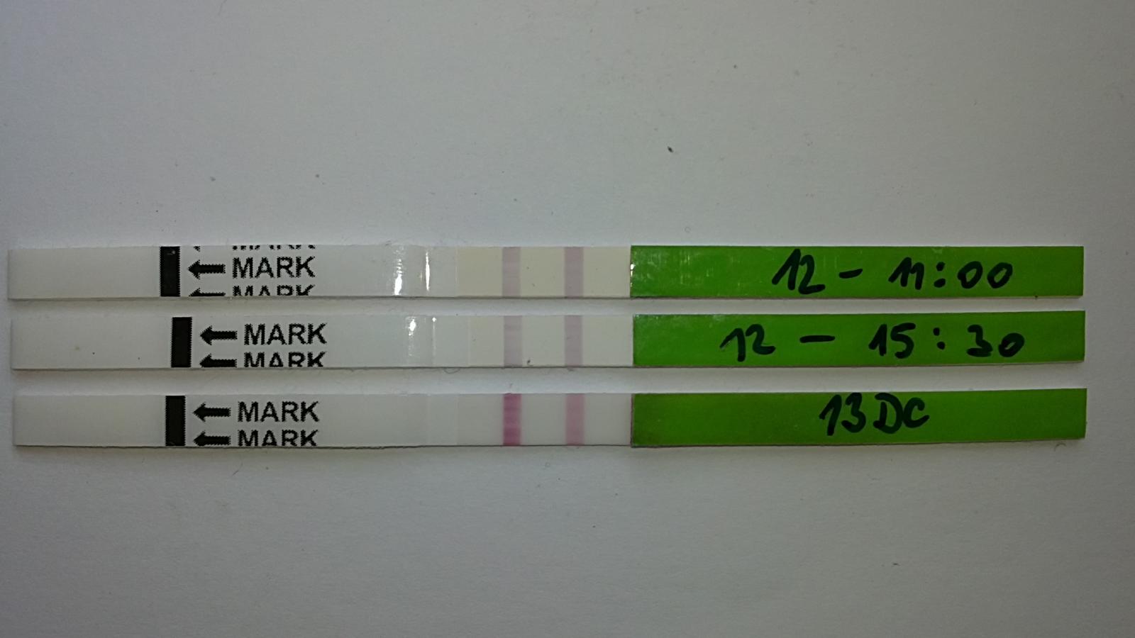 @ceresnicka10 najklepsie medzi 12:00-13:00 aj ja tak robim raz som skusila jeden o 1 /bol pozitivny/ urobit a dalsi o 5 poobeden a uz bol slabsi a pritom na druhy den uz bol pozitivny zas