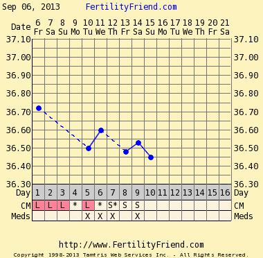 Zvyknem mavat krasne grafy a nikdy nic z toho a tento sa mi vôbec nepaci a ani FF sa akosi nepozdava ale tak skoncit by mohol pekne no nie? http://www.fertilityfriend.com/home/4082e5