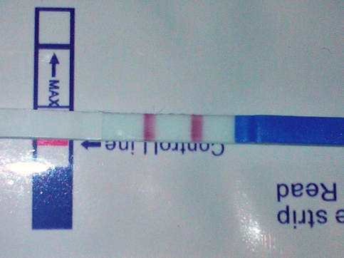 Baby ja som trosku na prasky...teplota sa stale drzi, ale dnes opat test ukazal len slabeho ducha, myslela som si, ze mi bude silniet a naozaj volnym okom nevidno tu druhu ciarku, na fotke mozno neuvidi ziadna z vas..... Trosku spinim od vcera, myslite si, ze pri takejto vysokej teplote mozem dostat M dnes? necitim sa tak vobec, ze by mala prist. Skor mam zaludocne nevolnosti uz tretí den ( je mi na vracanie) . Neviem vobec na com som....som zmätena....... 😒 ☹