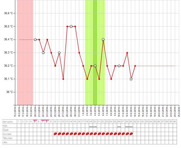 Ale ovulka už bola - 10. alebo 11. 4. Aj teplota sa už tak tvári (36,7 a tak sú moje poovu teploty), ale hlavne, že mňa vždy od ovulky bolia prsia a už bolia 😀 A ty mávaš stále takéto dlhé cykly alebo len tento je zblbnutý?