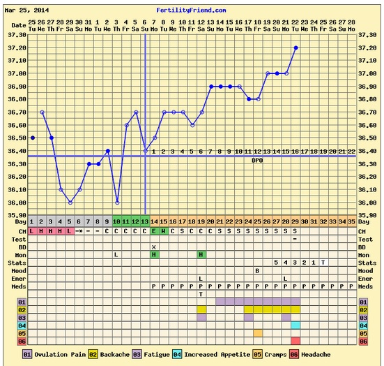 jinak u mě to vypadá takhle http://www.fertilityfriend.com/home/4bf3a0 žádný extrémní teploty to nejsou, takže mě dnes chytla trošku taková blbá nálada, že beztak zas nic, ale uvidím, co bude dál, no ale teď su zas dvě noce v práci, tak to nepoznám, co přesně dělá teplotka..