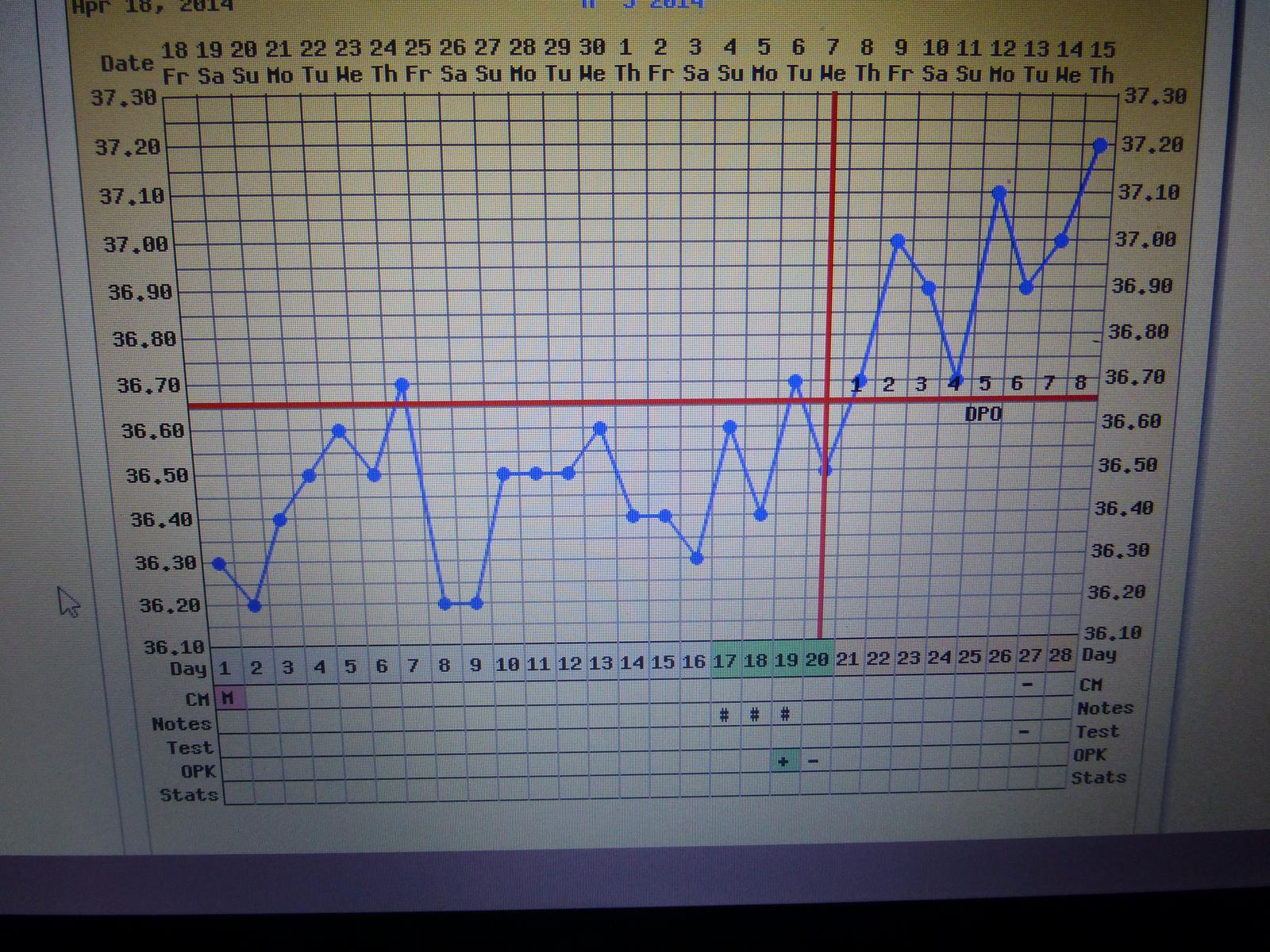 @luca16 tvoj graf mi pripomína môj graf v minulom cykle, tiež som mala viacmenej ustálené teploty http://www.fertilityfriend.com/home/Rybkaa. Ty meráš teplomerom na 1 desatinné miesto, ja na 2 desatinné miesta, preto drobné odchýlky, kým tvoj teplomer tvoje teploty zaokrúhľuje 🙂 V každom prípade, pekný graf, už ho len udržať 🙂