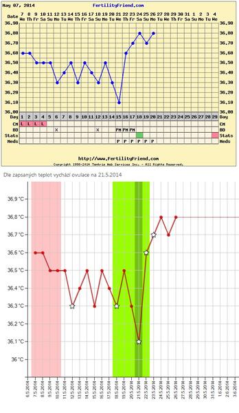 http://www.fertilityfriend.com/home/4e3e6a som zvedava, zase slavna poovulacna 36,5 😀 dufam, ze to bude ako minuly mesiac, nech som z toho dobre jelen...