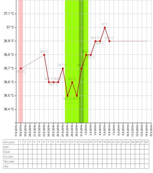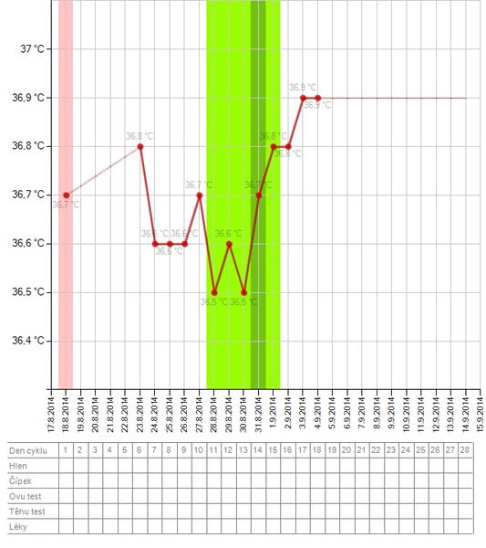 @annna79 implantacni pokles byt nemusi (ja ho nikdy nemela), kazdy to ma jinak, teplota muze stoupat pomalu, drzet se na stejne hodnote nebo klidne kolisat, BT neni zrovna neco co je presne definovane jak ma vypadat. Spis to chce zmerit par svych cyklu a ty pak porovnavat mezi sebou. Ale obecne receno, pokud ti teplota neklesne na predovulacni hodnotu, tak neni nic ztraceno. ;)