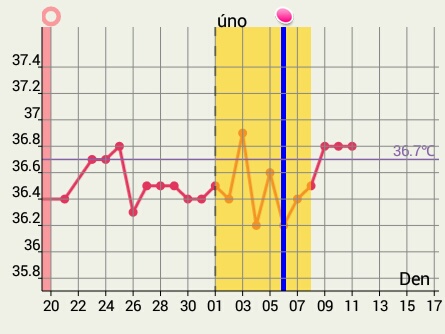 tak mně holky dneska klesla teplota až na 36,25...čili pod tu čáru celkem hluboko...předpokládám, že i druhý měsíc po vysazení HAK mám anovulační cyklus 😔