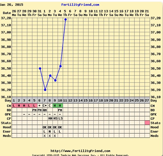 Tak mne to po dnesnim mereni ukazalo ovu na utery uz, ale podle me to je blbost. Jsem nachlazena a vcera jsem mela zvysenou teplotu (37.1), dneska zas 36,5. Co myslite?