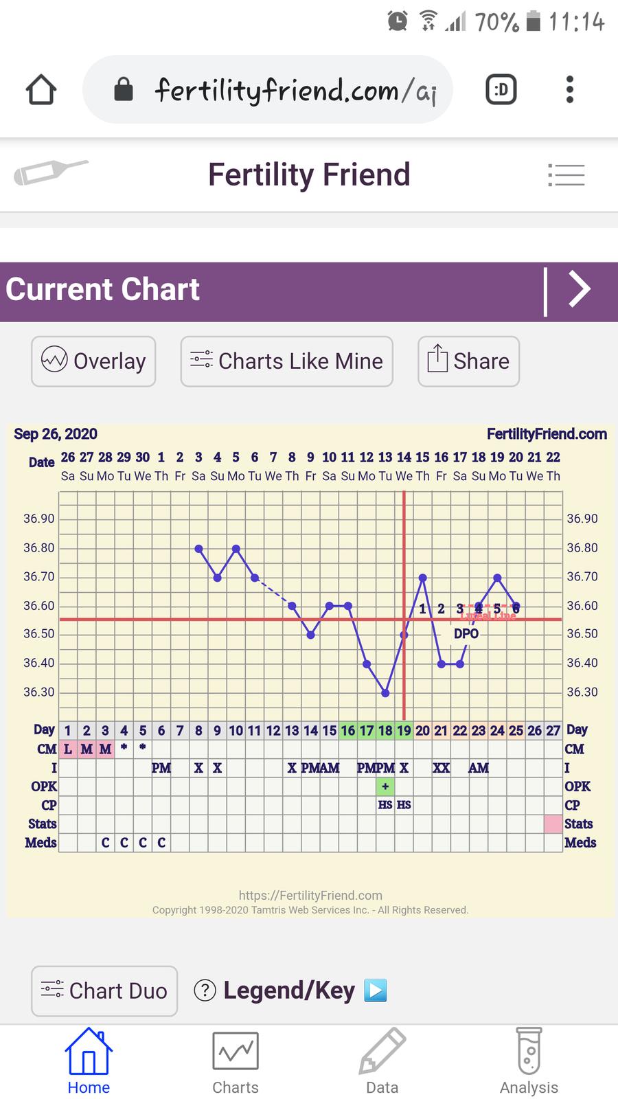 @nikynikol25 Já těm grafům extra hodně nevěřím, ale u vás to nějak tak bude.Jen typuju o den dřív. 19 sice ještě není splněno pravidlo 3 po 6, ale už tam je tendence stoupání teploty po celkem znatelném poklesu. Podle mne 18DC ovulace, ale pokud měříte ráno, tak to znamená mezi cca 1 v noci a 8 ráno. Za tu dobu se stihl nastřádat trochu progesteron a 19DC už teplotka trochu vyskočila. Pak se něco dělo😀 a tělo zmatkovalo a teplota spadla. Možná první kontakt zárodečku se sliznicí a pak už HCG, které zvedlo teplotu. Já to cítím takto z té křivky+ pozitivní ovu testy. Ale nevíme. Naděje tu rozhodně je.