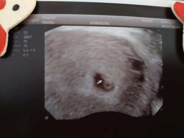 Jinak včera jsem byla ještě u svy gyndarky a ta to tak černě neviděla. Že je hematom menší, že by se měl vstrebat a že je daleko od embrijka, takže i kdyby se utrhnul, neměl by ho vzít s sebou. Vyfasla jsem opakovaci recept na hromadu utrogestanu a i fotku. Bublina odpovídala přesně 6+3 a srdíčko blikalo jak o závod. Uff. Tak snad dobrý teda..