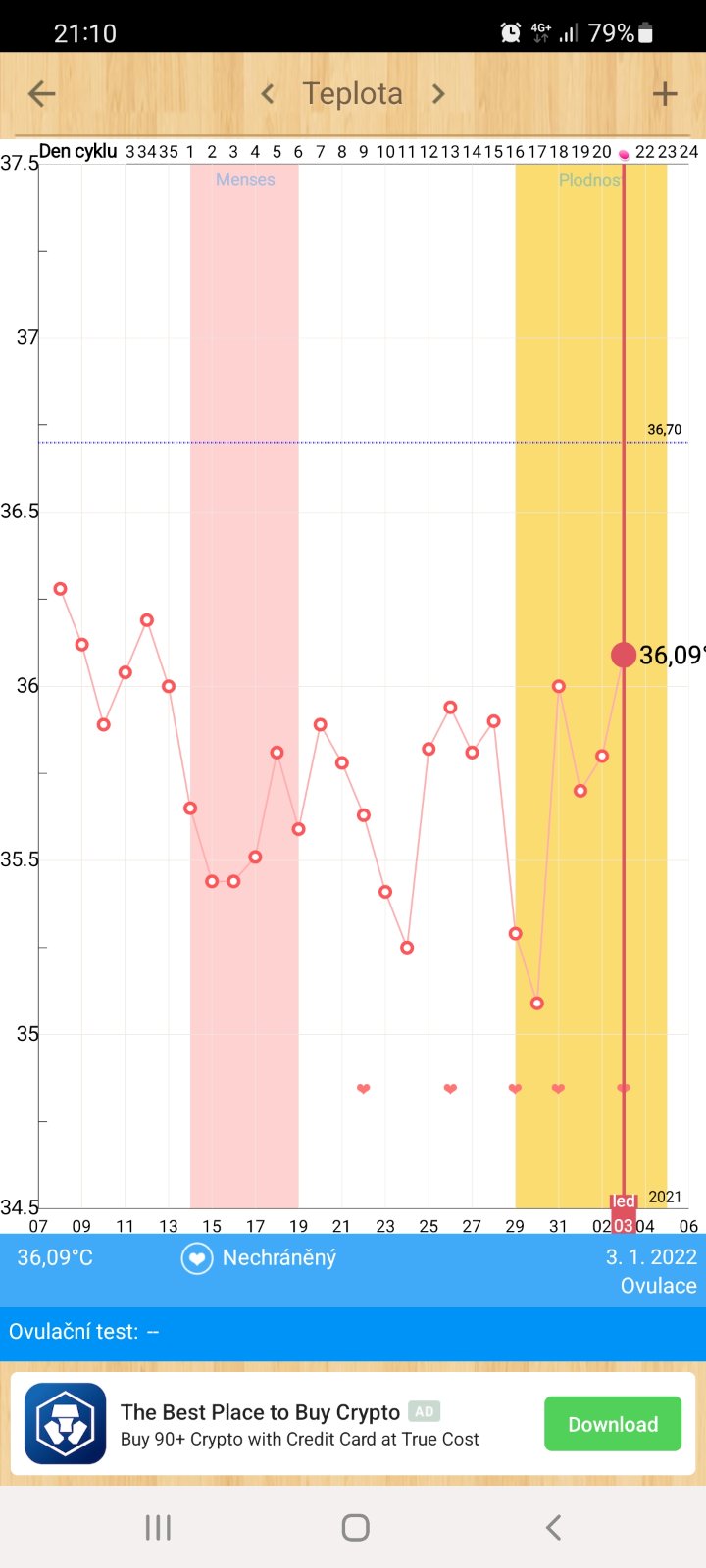 @agataa6 Přesně tak, během menstruace se neměří, není to potřeba 🙂. Jinak myslím, že ta ovulace mohla být toho 2. 1., ale jak měříš v ústech, tak to fakt lítá, takže to nejde 100% říct. Pozorovala jsi i nějaké další znaky ovulace jako třeba ovulační hlen? Každopádně sex máte podle aplikace často, takže jste se nemohli netrefit 🙂.