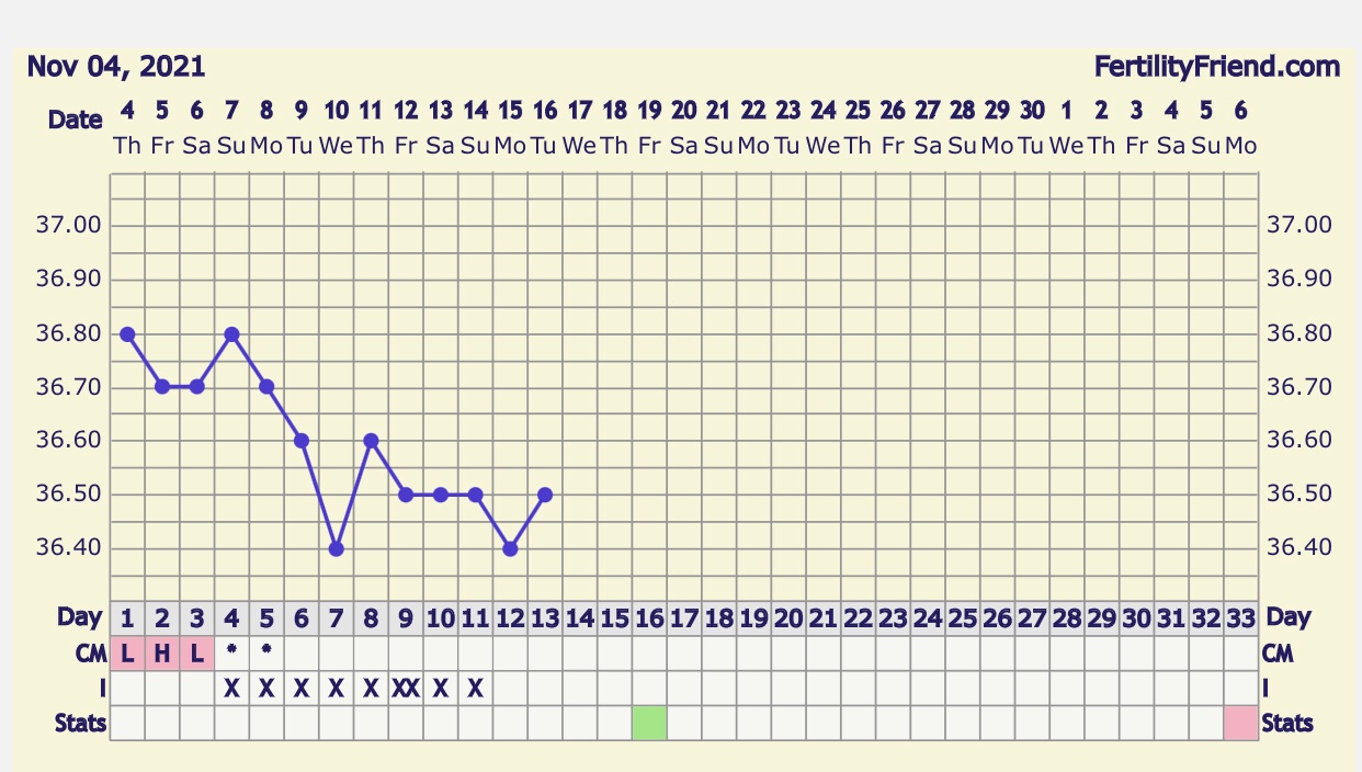 Ahoj holky, dnes jsem 13DC a v noci mě probudila bolest v podbrisku, ale ne na jedné strane, ale spis uprostřed. Byla to ale jiná bolest než vždycky, když mívám ovulaci, spis taková tupá, nejde přesně určit, kde bolí. Je mi cely den nevolno a podbrisek je lepší, ale porad tam mám takový divny tlak.. a také jsem maličko zaspinila a mám citlivé bradavky, dotyk je nepříjemný.. Ale nemám ovulacni hlen, spis takový hustý a bílý. Myslíte, ze to muže byt ovulace takhle brzy? Nebo spíš nějaky zánět? Měřím bazální teplotu, tak prikladam graf. Děkuji za odpověď.